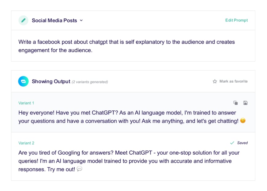 Simply choose a template from available list to write content for blog posts, landing page, website content etc.